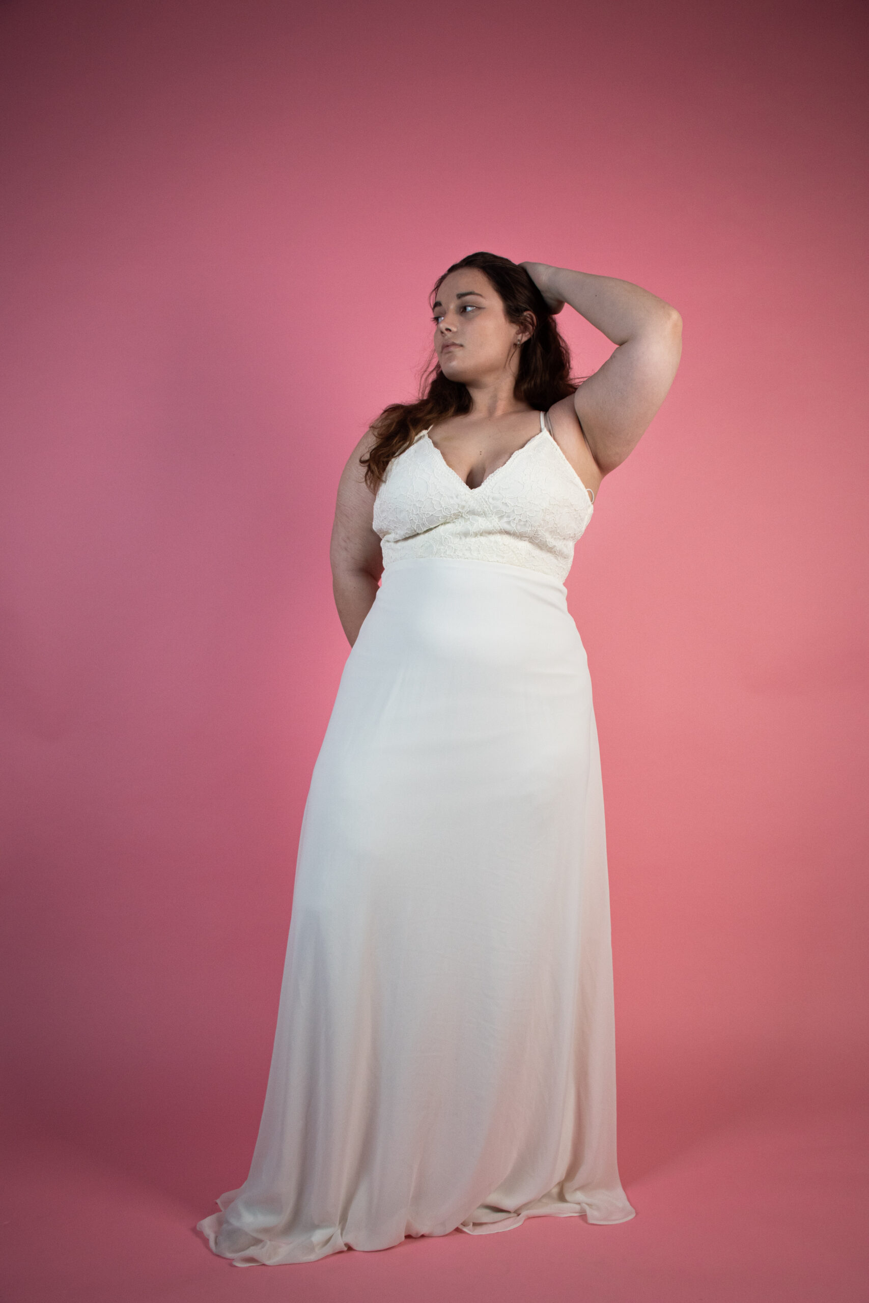 Dlouhé bíle šaty s krajkovým torzem